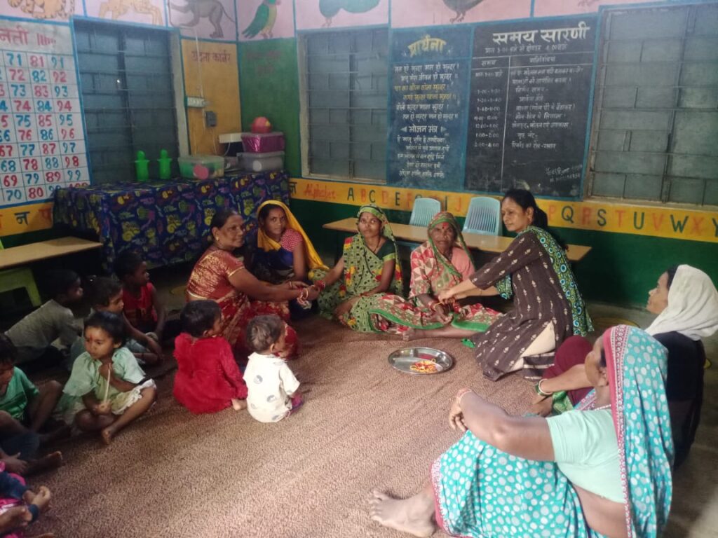 आंगनबाड़ी केन्द्रों में समुदाय की भागीदारी बढ़ाने के लिए बांधे गए रक्षासूत्र