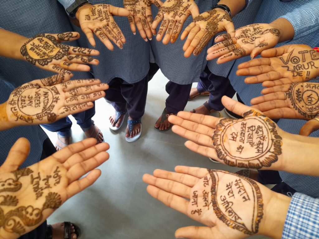 गर्ल्स कॉलेज की छात्राओं ने रचाई लोकतंत्र की मेंहदी