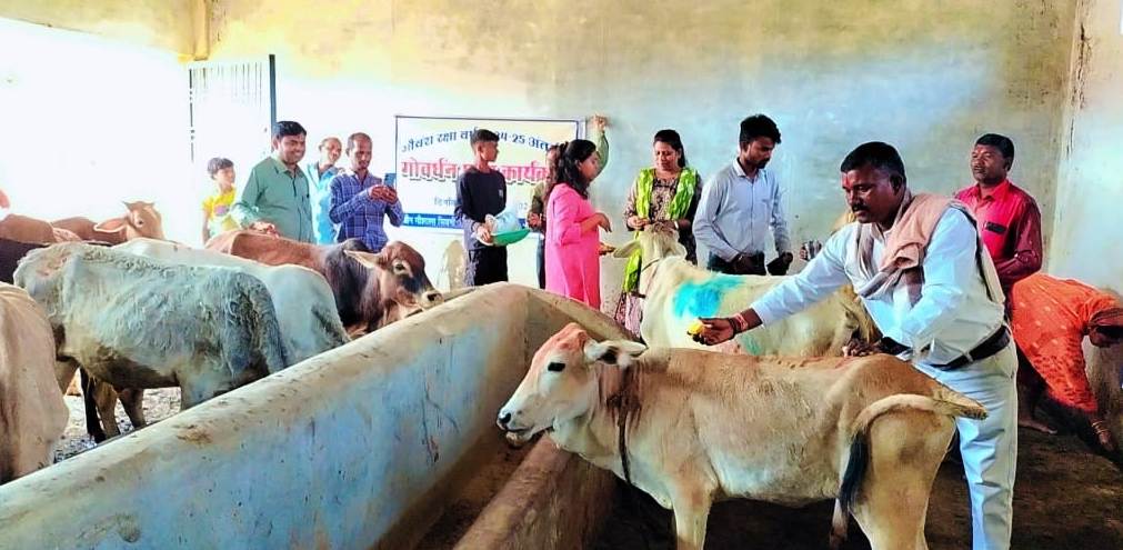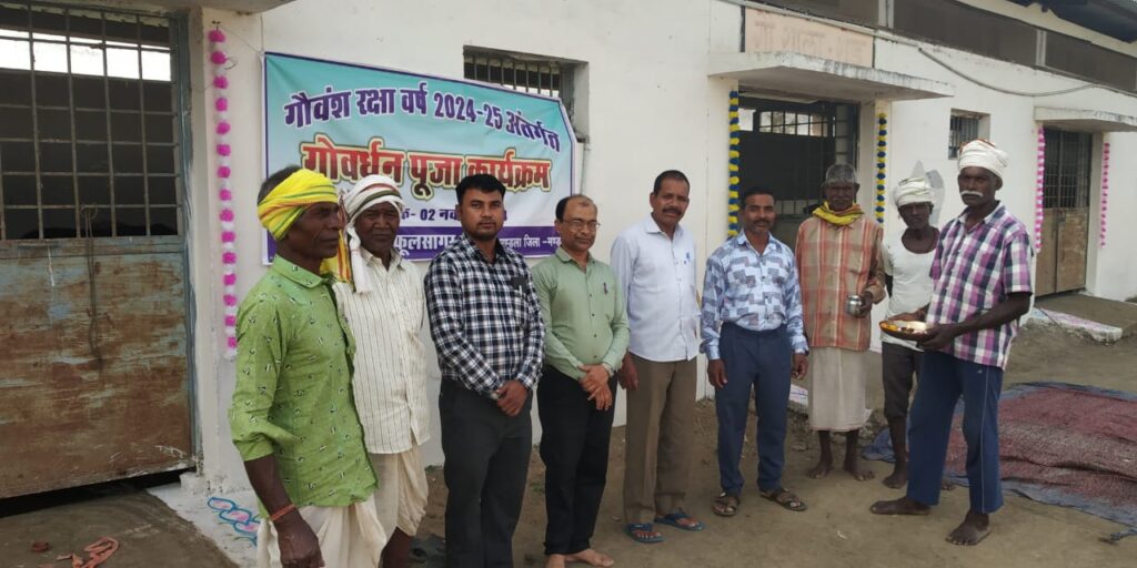 मंडला। मुख्यमंत्री डॉ. मोहन यादव के द्वारा गुड़ी पड़वा 9 अप्रैल 2024 से 29 मार्च 2025 तक गौवंश रक्षा वर्ष मनाने के साथ ही गौवंश और गौरक्षा से संबंधित घोषणाएं की गईं हैं। जिसके तहत वर्ष 2024-25 को गौ रक्षा वर्ष के रूप में मनाया जा रहा है। कलेक्टर सोमेश मिश्रा के निर्देशन और उप संचालक पशु चिकित्सा विभाग डॉ. यू.एस. तिवारी के मार्गदर्शन में गौ रक्षा वर्ष के अंतर्गत शनिवार को कार्तिक कृष्ण पक्ष अमावस्या के अवसर पर जिले में संचालित गौशाला मधुबन नागपाठ गौशाला डुडुडुम विकासखंड नैनपुर, नवीन गौशाला फूलसागर विकासखंड मंडला, धेनुबाड़ी गौशाला टिकरिया विकासखंड मंडला में गोवर्धन पूजन का कार्यक्रम सम्पन्न किया गया। गोवर्धन पूजन के अवसर पर अहीर नृत्य प्रस्तुत किया गया। कार्यक्रम में उपस्थित जनप्रतिनिधि, समाजसेवी और नागरिक गौपूजन में शामिल होकर गौवंश पशुओं को लड्डू प्रासन कराया। कार्यक्रम में रंगोली, पशु उपचार, स्वच्छता, गौ सेवा क्षेत्र में उत्कृष्ट कार्य करने वाले गौ सेवकों और पशु प्रेमियों को सम्मानित किया गया।