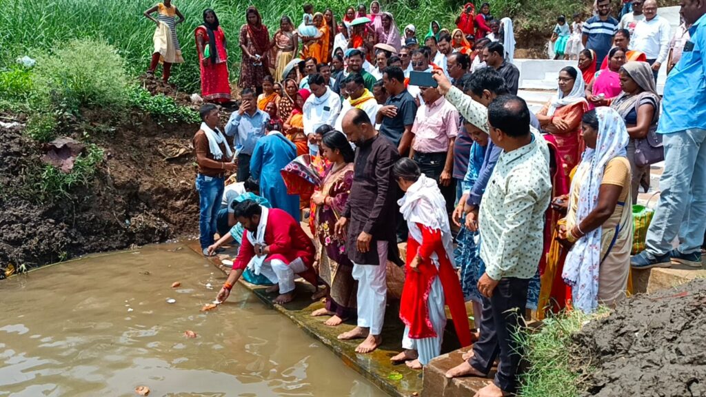 मंडला विकासखंड के ग्राम सकवाह के सूर्यकुंड धाम में जल संवाद कार्यक्रम का आयोजन किया गया। इस अवसर पर प्रदेश की लोक स्वास्थ्य यांत्रिकी मंत्री संपतिया उइके ने कहा कि जल स्त्रोतों के संरक्षण और पुनर्जीवन के लिए सरकार द्वारा चलाए जा रहे इस अभियान में प्रत्येक व्यक्ति की सहभागिता आवश्यक है। जल के बिना जीवन की कल्पना नहीं की जा सकती, इसलिए जल स्त्रोतों को संरक्षित करना हम सबकी सम्मिलित जिम्मेदारी है। कार्यक्रम में उन्होंने श्रमदान के माध्यम से सूर्यकुंड घाट में एकत्रित मिट्टी हटाया एवं कुंड के जीर्णोद्धार कार्य का भूजिपूजन किया। इस अवसर पर जिला पंचायत अध्यक्ष संजय कुशराम, उपाध्यक्ष कमलेश तेकाम, जनपद पंचायत अध्यक्ष सोनू भलावी, जिला पंचायत सदस्य संदीप सिंह, सीईओ जिला पंचायत श्रेयांश कूमट, संयुक्त कलेक्टर हुनेन्द्र घोरमारे सहित बड़ी संख्या में ग्रामीणजन उपस्थित रहे।