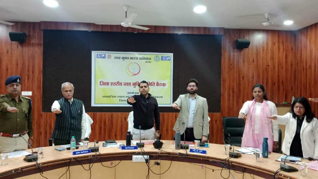मंडला। कलेक्टर सोमेश मिश्रा की अध्यक्षता में जिला योजना भवन में जिला स्तरीय नशामुक्त समिति की बैठक संपन्न हुई, जिसमें नशामुक्त जिला बनाने के संबंध में विस्तार से चर्चा की गई। कलेक्टर ने कहा कि नशे से बचाव के लिए प्रभावी प्रयास करें। उन्होंने कहा कि जहां से नशा उपलब्ध हो रहा है उन्हीं स्थानों चिन्हित कर उन पर पुलिस एवं प्रशासन की संयुक्त टीम द्वारा कड़ी कार्यवाही करें। इस दौरान कलेक्टर ने शपथ भी दिलाई। बैठक में जिला योजना भवन में संपन्न हुई इस बैठक में सीईओ जिला पंचायत श्रेयांश कूमट, अपर कलेक्टर राजेन्द्र कुमार सिंह, डिप्टी कलेक्टर क्षमा सराफ, आशुतोष ठाकुर, उपसंचालक सामाजिक न्याय विभाग रोहित बड़कुल सहित समस्त एसडीएम तथा जिला अधिकारी उपस्थित थे।