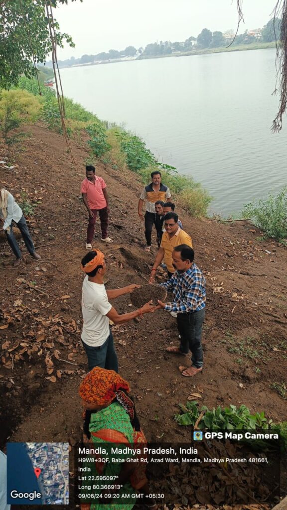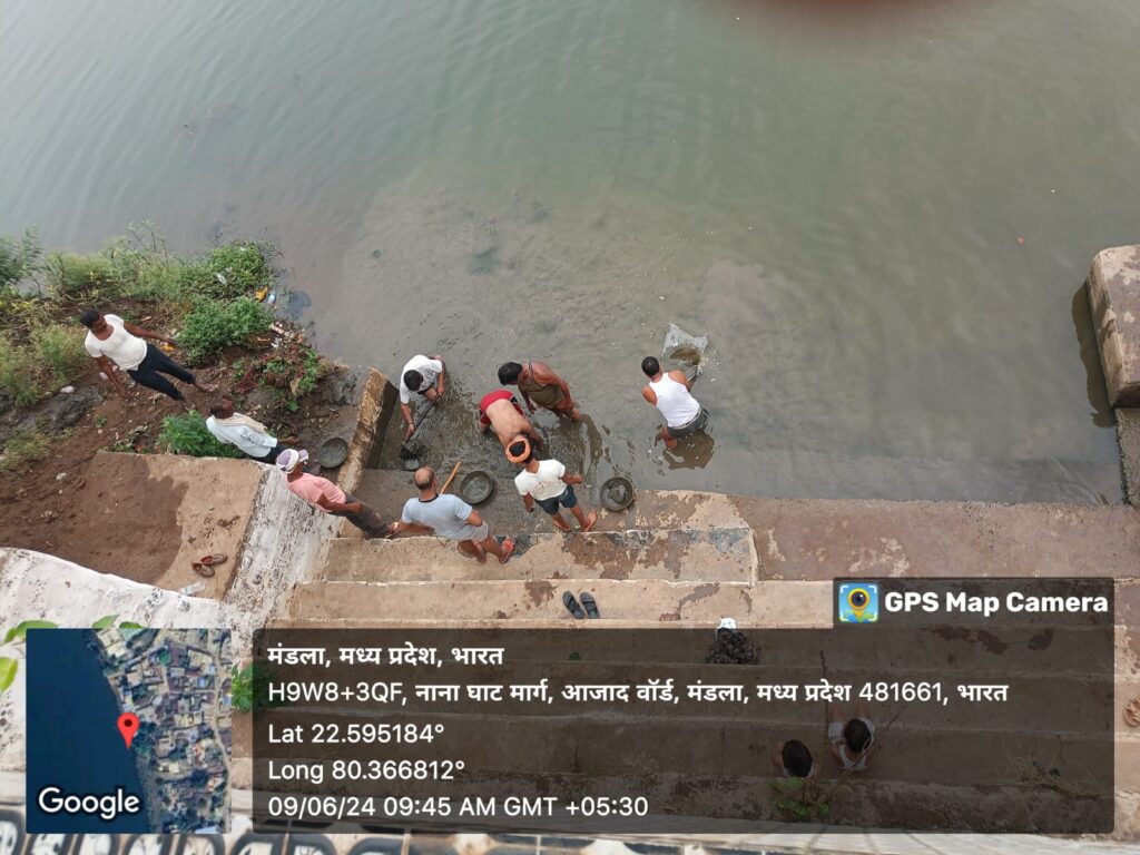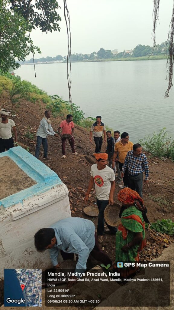 मध्यप्रदेश शासन द्वारा चलाए जा रहे जल गंगा संवर्धन अभियान अंतर्गत 9 जून 2024 को मंडला नगरपालिका परिषद अंतर्गत नानाघाट में श्रमदान कर घाट की सफाई की गई तथा पर्यावरण एवं जल संरक्षण की शपथ दिलाई गई। उक्त कार्यक्रम में विनोद कुछवाहा अध्यक्ष नगरपालिका, सुधीर मिश्रा पार्षद, गजानंद नाफड़े सीएमओ, प्रवीण ठाकुर उपयंत्री, राजेश छत्री, कपिल वर्मा पत्रकार, दिनेश चौधरी, अशीष चौरसिया, श्याम श्रीवास, संतोष बर्मन, आनंद तिवारी, प्रशांत दीक्षित सहित संबंधित अधिकारी, कर्मचारी तथा स्थानीय लोग उपस्थित रहे।