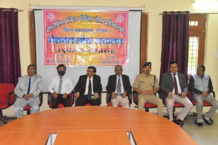 राष्ट्रीय विधिक सेवा प्राधिकरण नई दिल्ली के निर्देशानुसार एवं म0प्र0 राज्य विधिक सेवा प्राधिकरण जबलपुर के आदेशानुसार नेशनल लोक अदालत का आयोजन सम्पूर्ण देश में आयोजित किया गया। इसी तारतम्य में जिला मण्डला में जिला न्यायाधीश, अध्यक्ष जिला विधिक सेवा प्राधिकरण एस0के0 जोशी के निर्देशन में एवं सचिव जिला विधिक सेवा प्राधिकरण प्रवीण कुमार सिन्हा के मार्गदर्शन में नेशनल लोक अदालत का आयोजन किया गया जिसमें सभी प्रकार के राजीनामा योग्य आपराधिक प्रकरण, सिविल प्रकरण विद्युत प्रकरण, मोटर दुर्घटना, भरण-पोषण, चैक बाउन्स, श्रम, राजस्व (जिला न्यायालय एवं मान0 उच्च न्यायालय में लंबित प्रकरण) पारिवारिक वैवाहिक मामले न्यायालय के प्रकरणों के साथ-साथ, बैंक, नगरपालिका, विद्युत एवं बी0एस0एन0एल0 के प्रीलिटिगशन प्रकरणों का निराकरण किया गया।