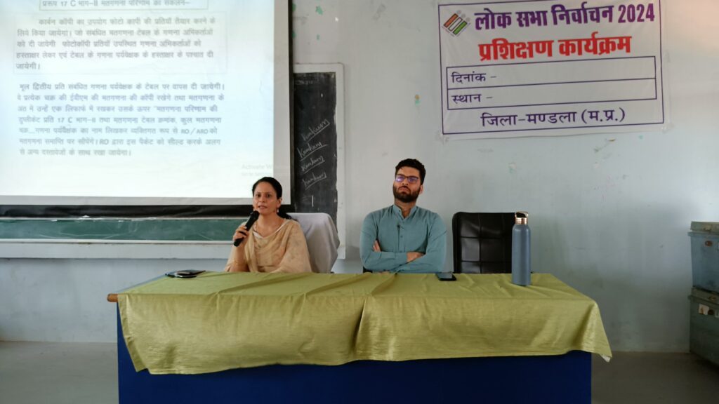लोकसभा निर्वाचन-2024 के तहत संसदीय क्षेत्र के बिछिया, निवास तथा मंडला विधानसभा क्षेत्रों के मतों की गणना 4 जून को शासकीय पॉलीटेक्निक महाविद्यालय मंडला में संपन्न होगी। इस संबंध में रानी दुर्गावती शासकीय स्नातकोत्तर महाविद्यालय में गणना सुपरवाइजर, गणना सहायक एवं माइक्रो ऑबजर्वर को ईव्हीएम मशीन एवं पोस्टल बैलेट से मतगणना संबंधी प्रशिक्षण आयोजित किया गया। प्रशिक्षण में सीईओ जिला पंचायत श्रेयांश कूमट सहित संबंधित उपस्थित रहे।