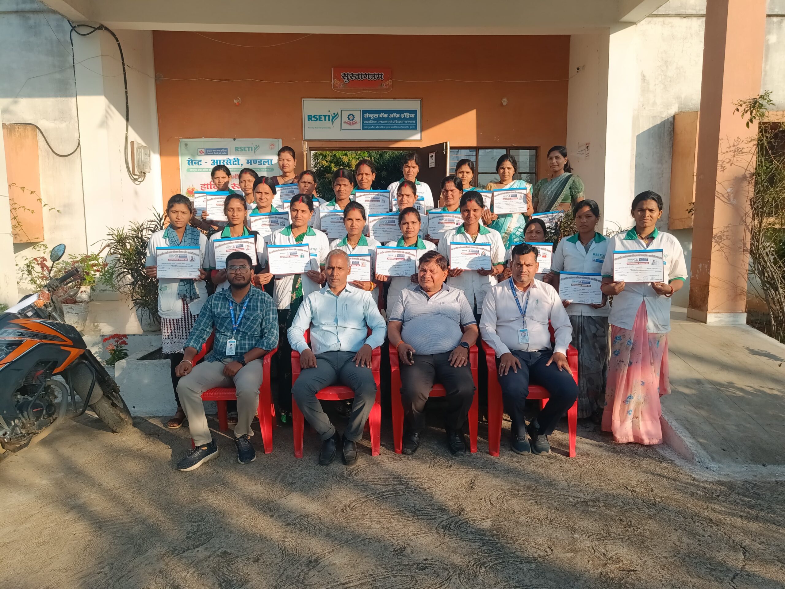 सेंट्रल बैंक ऑफ इंडिया ग्रामीण स्वरोजगार प्रशिक्षण संस्थान (सेंट आरसेटी) मंडला में महिलाओं को बी.सी. सखी का 6 दिवसीय प्रशिक्षण प्रदान किया गया जिसमें कुल 22 महिलाओं ने प्रशिक्षण प्राप्त किया। महिलाओं को बैंक से संबंधित गतिविधियों की जानकारी दी गई। प्रशिक्षण के पश्चात् ऑनलाइन परीक्षा भी हुई जिसमें सभी 22 प्रशिक्षणार्थी उपस्थित रहे और सभी ने परीक्षा उत्तीर्ण किया। इसके पश्चात कार्यक्रम के समापन अवसर पर सभी प्रशिक्षणार्थियों को प्रमाण पत्र वितरित किये गये। कार्यक्रम में डायरेक्टर राजेश रॉय, कार्यक्रम समन्वयक राजीव शर्मा, एफएलसीसी के.के. अवस्थी, यश मोहन उसराठे एवं अमित यादव आरसेटी स्टॉफ उपस्थित हुए।