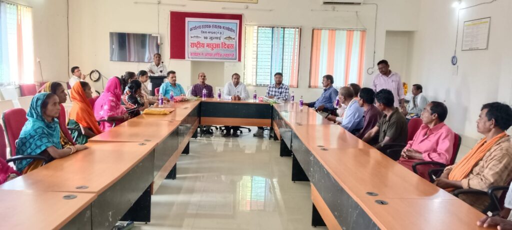 मण्‍डला। मछली पालन विभाग मण्डला एवं कृषि विज्ञान केन्द्र मण्डला के द्वारा संयुक्त रूप से राष्ट्रीय मछुआरा दिवस का कार्यक्रम कृषि विज्ञान केन्द्र मण्डला में मनाया गया। कार्यक्रम में बताया गया कि वैज्ञानिक डॉ. के.एच. एलिकुन्ही और डॉ. एच.एल. चौधरी की याद में हर साल 10 जुलाई को राष्ट्रीय मत्स्य किसान दिवस मनाया जाता है। इन वैज्ञानिकों ने 10 जुलाई 1957 को ओड़िशा के कटक में सी.आई.एफ.आर.आई के पूर्ववर्ती पोंड कल्चर डिविजन में इंडियन मेजर कार्प में प्रेरित एक्वाकल्चर, सीआईएफए, भुवनेश्वर में इंडियन मेजर कार्प में प्रेरित प्रजनन तकनीक का सफतापूर्वक प्रदर्शन किया था। कार्यक्रम में मछलीपालन विभाग के अधिकारियों, कृषि विज्ञान केन्द्र के वैज्ञानिकों, पेशेवरों उद्यमियों और जिले के मछुआरे और मछुआ सहकारी समिति के सदस्य उपस्थित थे।
