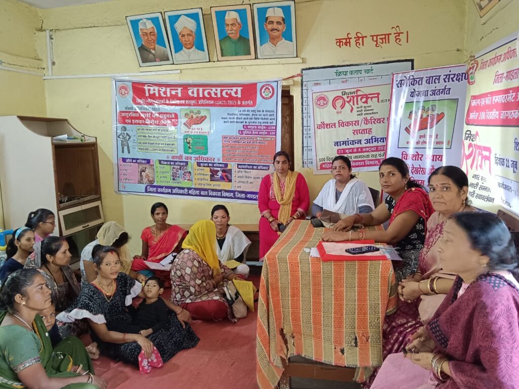 मंडला। प्रशासक वन स्टॉप सेंटर मंडला ने बताया कि बुधवार को स्वाधारगृह महाराजपुर मण्डला में जागरूकता शिविर का आयोजन किया गया। वन स्टॉप सेंटर प्रशासक श्रीमती मधुलिका उपाध्याय ने सरकार की कौशल विकास योजनाओं के बारे में बताया गया एवं इन योजनाओं से जुड़कर आत्मनिर्भर बनने हेतु महिलाओं को मार्गदर्शन प्रदान किया गया। जिले में विभिन्न सेंटरों में संचालित कौशल विकास योजना अंतर्गत महिलाओं और बालिकाओं के लिए सिलाई, कढ़ाई के कार्यों से जुड़ने हेतु कहा गया। साथ ही महिलाओं को महिला हेल्पलाईन 181, चाइल्ड हेल्पलाईन 1098, वन स्टॉप सेंटर एवं हब में दी जाने वाली सहायताओं के बारे में महत्वपूर्ण जानकारी दी गई। उक्त कार्यक्रम में स्वाधारगृह सचिव, कार्यकर्ता, अधीक्षिका एवं वन स्टॉप सेंटर के समस्त कर्मचारी उपस्थित रहे।