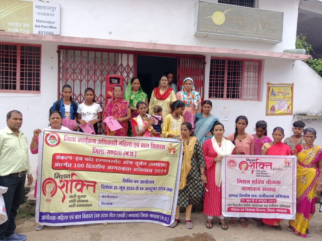 मंडला। वन स्टॉप सेंटर मण्डला द्वारा संकल्प 100 मिशन शक्ति योजना नामांकन सप्ताह- ओएससी और डब्ल्यूएचएल कर्मचारियों के लिए क्षमता निर्माण सत्र अंतर्गत डाक बैंक महाराजपुर जिला मण्डला के साथ डीबीटी सक्षमता एवं योजनाओं से लाभार्थी महिलाओं का आधार प्रमाणीकरण करने हेतु संयुक्त शिविर का आयोजन किया गया। शिविर के दौरान प्रशासक मधुलिका उपाध्याय द्वारा उपस्थित गर्भवती एवं धात्री महिलाओं को संतुलित भोजन एवं प्रसव से पहले पर्याप्त आराम की आवश्यकता के बारे में बताया गया एवं मातृवंदना योजना से जोड़ने हेतु मार्गदर्शन दिया गया। जिला हब में मिलने वाली सुविधाओं के बारे में भी बताया गया और वन स्टॉप सेंटर में दी जाने वाली सुविधाओं की जानकारी दी गई। महिलाओं को प्रोत्साहित किया गया और आगे भी इन गतिविधियों से जुड़ने के लिए प्रेरित किया गया।