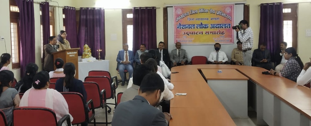 राष्ट्रीय विधिक सेवा प्राधिकरण नई दिल्ली के निर्देशानुसार एवं म0प्र0 राज्य विधिक सेवा प्राधिकरण जबलपुर के आदेशानुसार नेशनल लोक अदालत का आयोजन 9 मार्च 2024 को सम्पूर्ण देश में की गई। इसी तारतम्य में जिला मण्डला में जिला न्यायाधीश/अध्यक्ष जिला विधिक सेवा प्राधिकरण एस0के0 जोशी के निर्देशन में एवं सचिव जिला विधिक सेवा प्राधिकरण डी0आर0 कुमरे के मार्गदर्शन में नेशनल लोक अदालत का आयोजन किया जा रहा है। सभी प्रकार के राजीनामा योग्य आपराधिक प्रकरण, सिविल प्रकरण विद्युत प्रकरण, मोटर दुर्घटना, भरण-पोषण, चैक बाउन्स, श्रम, राजस्व (जिला न्यायालय एवं उच्च न्यायालय में लंबित प्रकरण) पारिवारिक वैवाहिक मामले न्यायालय के प्रकरणों के साथ-साथ, बैंक, नगरपालिका, विद्युत एवं बी0एस0एन0एल0 के प्रीलिटिगेशन प्रकरणों का निराकरण किया गया।