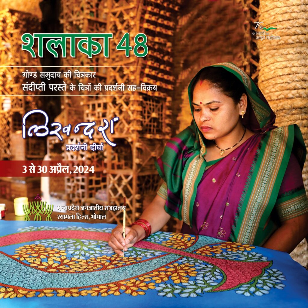 मध्यप्रदेश जनजातीय संग्रहालय द्वारा प्रदेश के जनजातीय चित्रकारों को चित्र प्रदर्शनी और चित्रों की बिक्री के लिये सार्थक मंच उपलब्ध कराने की दृष्टि से प्रतिमाह ‘लिखन्दरा प्रदर्शनी दीर्घा’ में किसी एक जनजातीय चित्रकार की प्रदर्शनी सह विक्रय का संयोजन “शलाका” नाम से किया जाता है। इसी क्रम में 3 अप्रैल, 2024 से गोंड समुदाय की चित्रकार श्रीमती संदीप्ति परस्ते के चित्रों की प्रदर्शनी सह-विक्रय का संयोजन किया गया है। 48वीं शलाका चित्र प्रदर्शनी 30 अप्रैल, 2024 (मंगलवार से रविवार) तक निरंतर रहेगी। इस प्रदर्शनी में उनके बनाये गये 26 चित्रों को प्रदर्शित किया गया है।